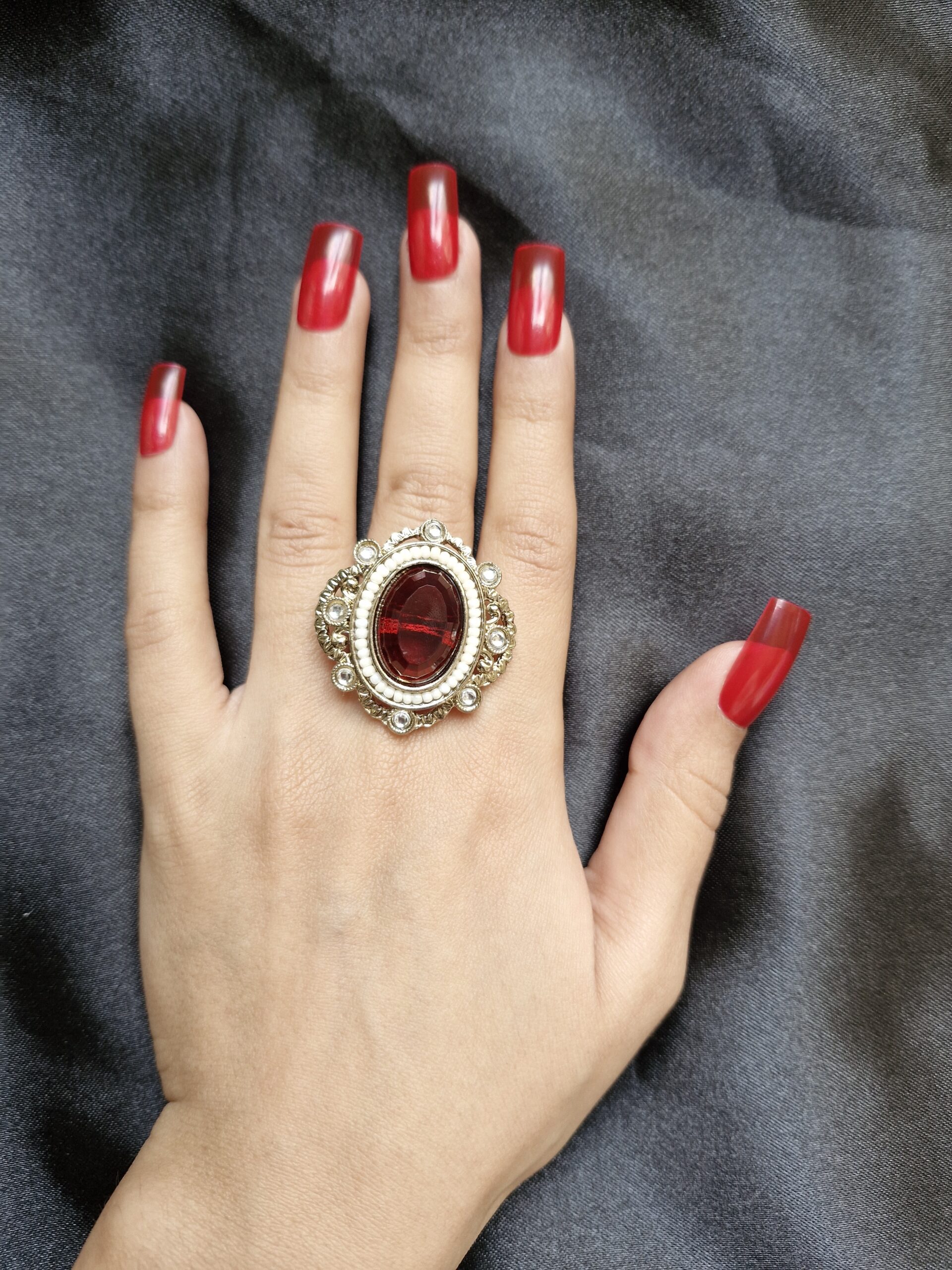 / Jamila Maroon Stone Studded Ring