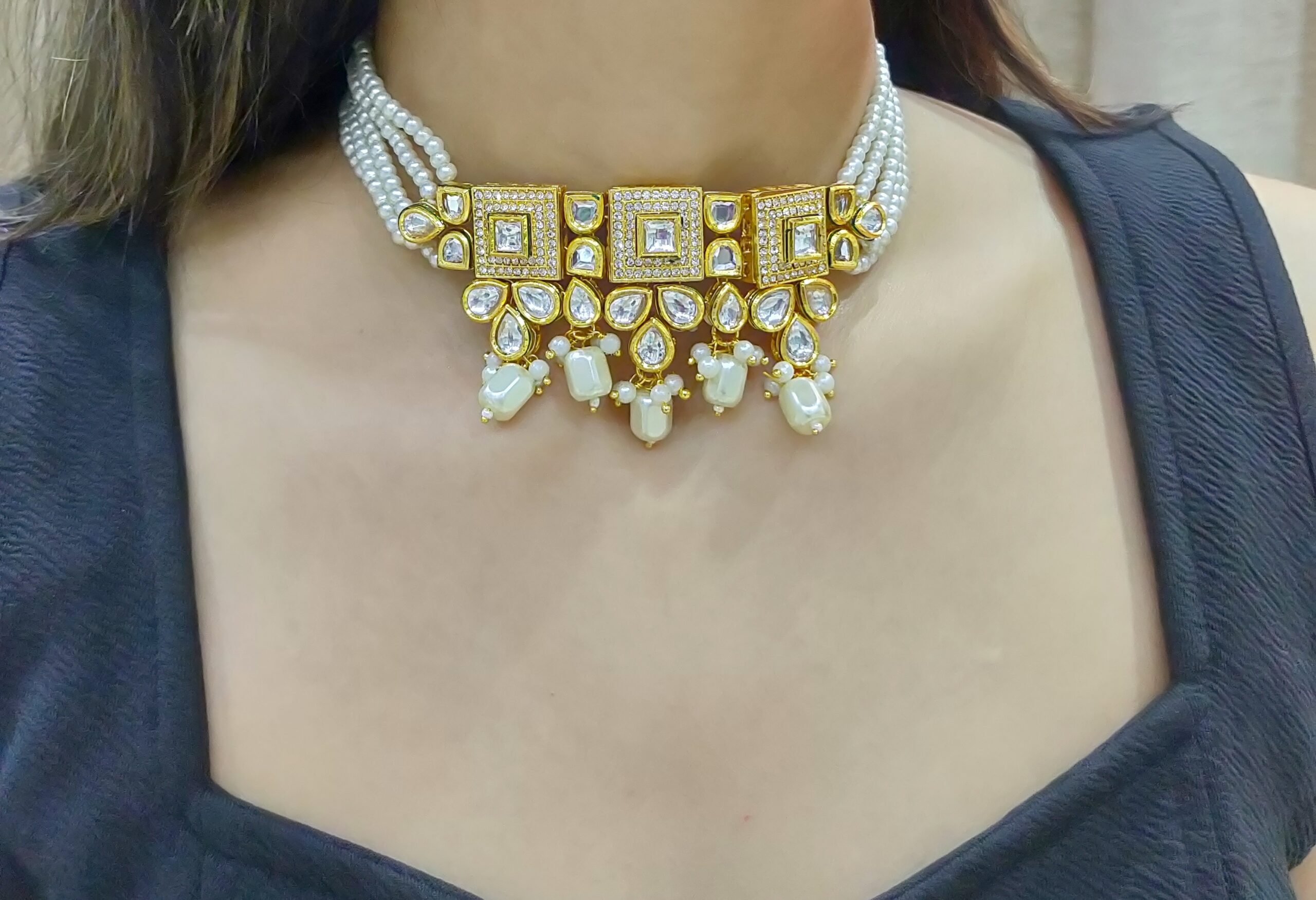 Azra White Kundan Choker Set