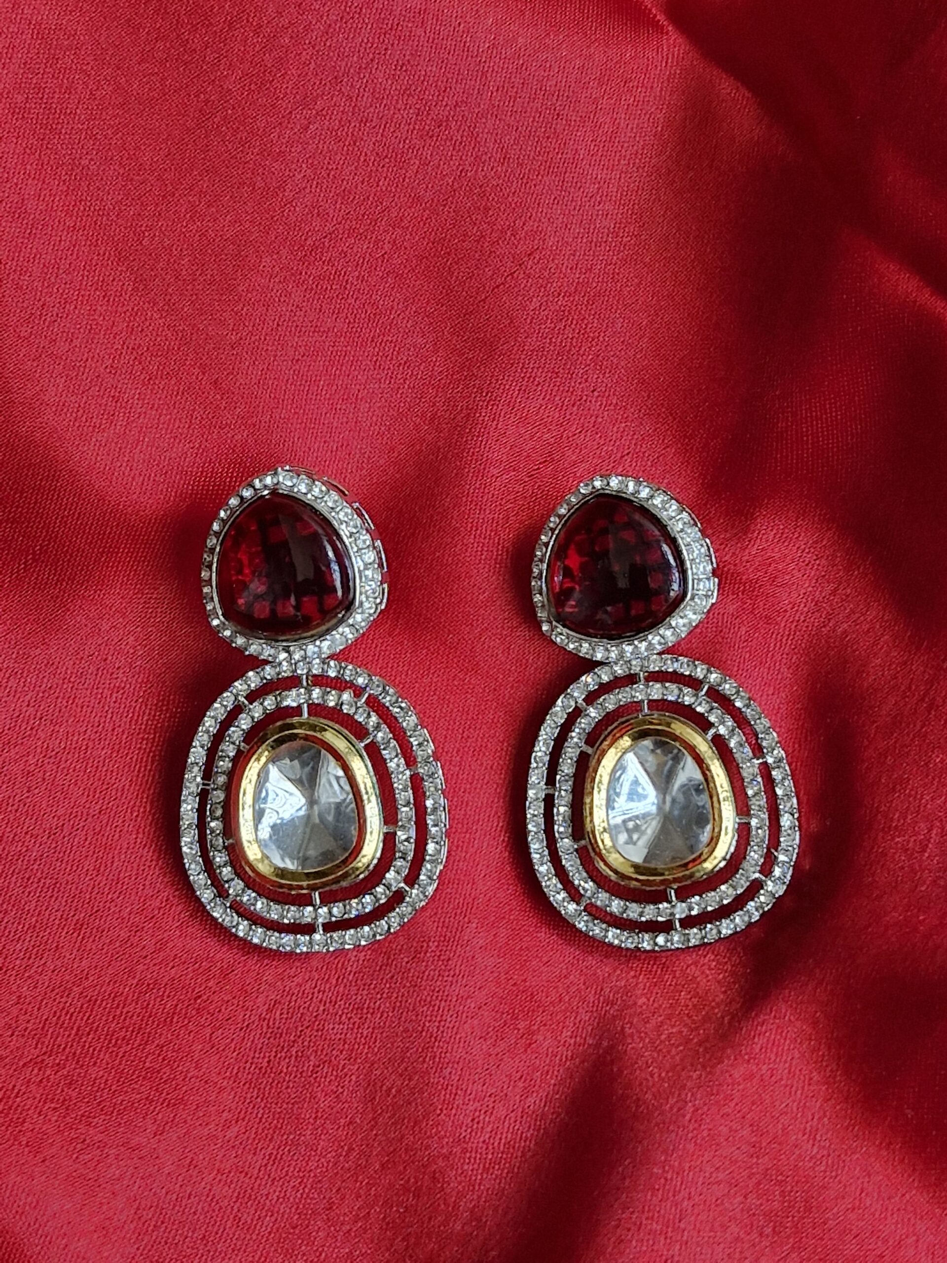 Zaisha Maroon Kundan Earrings